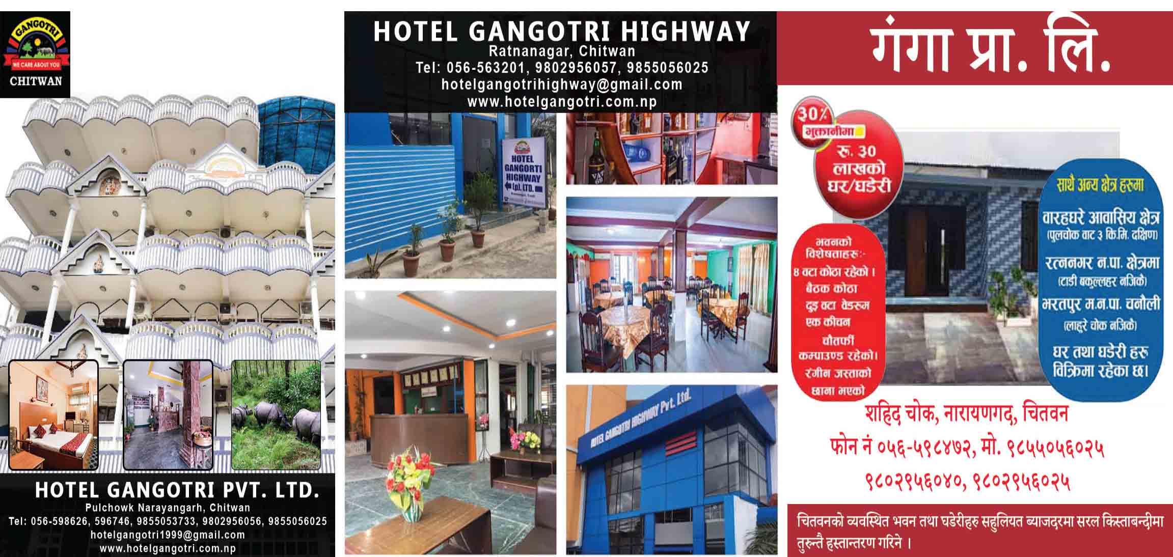 | Description | : .Free Parking .High-Speed Internet | WiFi .Restaurant & Bar .All the Basic amenities .Air conditioning .Soundproof Room .Sofa in the Room .Slippers.HairdryerToilet Paper.Flat-screen TV .Towels. For reservation: ☎️: 9802956057 Reservation 056-563201 hotelgangotrihighway@gmail.com Hotel Gangotri Pvt. Ltd. is a well-established mid-range hotel centrally located in Narayanghat with good amenities, while Hotel Gangotri Highway appears to be a refined, modern counterpart possibly targeting travelers on the main highway corridor. Both seem interlinked in ownership and services. If you need help booking, pricing details, or choosing based on travel style—just let me know!