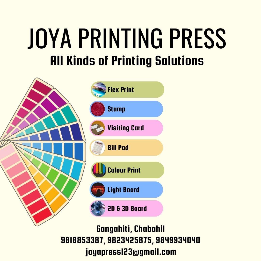 Joya Printing Press is a printing service located in Gangahiti, Chabahil, Kathmandu. They offer a range of printing solutions, including offset and digital printing, catering to both personal and business needs. Their services encompass the production of business cards, brochures, flyers, banners, and other promotional materials. The press is known for its quality output and timely delivery, making it a preferred choice for many in the local community. |