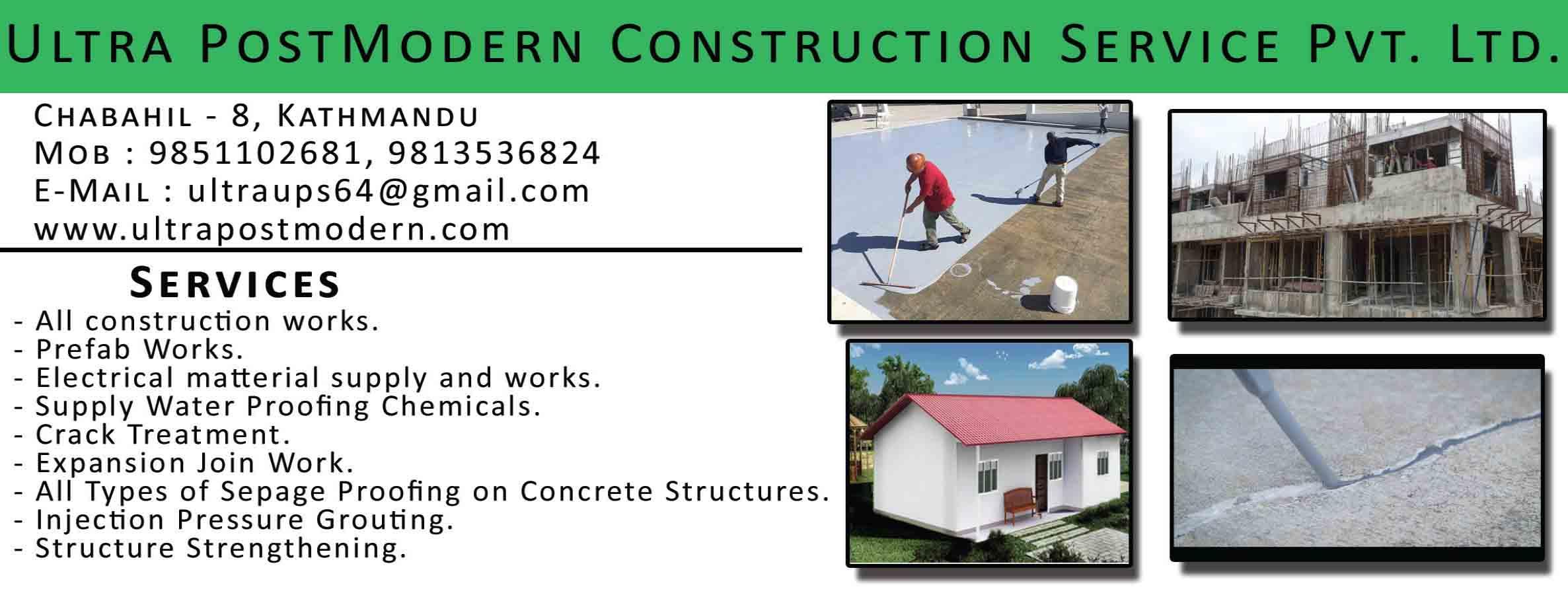 | Description | :OUR SERVICES: - Supply Water Proofing Chemicals. - Crack Treatment. - Expansion Join Work. - All Types of Sepage Proofing on Concrete Structures. - Injection Pressure Grouting. - Structure Strengthening. AS WELL AS ALL KINDS OF HOUSE WIRING, PLUMBING, PAINTING & ALUMINIUM. "A Complete Solution for Structural Repair Rehabilitation & Water Proofing Treatment" |