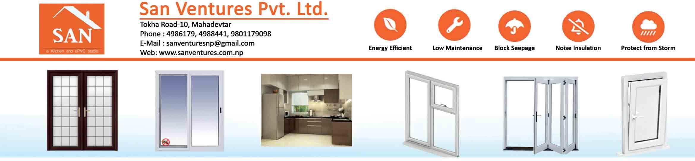 | Description | :SAN Offers vast range of windows & doors designs for the home and office that are sure to add grace to your space. We have an exotic range of high-quality uPVC and aluminum home windows & doors that have been designed to enhance the aesthetics and to protect your home from the chaos of the world outside. |